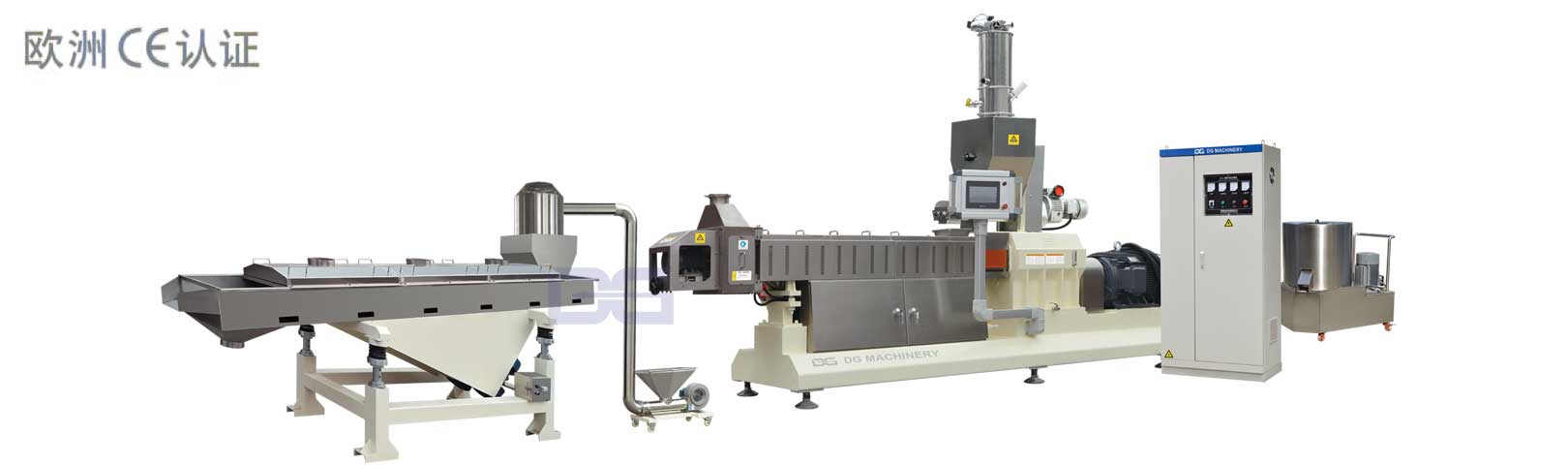 該生產線是雙螺杆擠壓技術的新型應用,生產線以植物澱粉為主要原料,經雙螺杆擠出機擠壓糊化、膨化發泡、擠出切割為柱狀、開花狀的富有緩衝彈性、超輕的澱粉基發泡材料(澱粉基泡泡粒),無需添加任何發泡劑;澱粉基泡泡粒用於包裝填充物,可以迅速均勻地填滿包裝物品周圍空間;因其綠色環保全降解、無毒無味、重量輕、防靜電等特質而被用於:電子電器、精密儀器儀表等高檔產品、化妝品、食品的緩衝防震包裝。