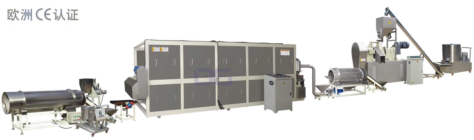 該生產線是生產奇多栗米棒的專用設備,是以20目(mu)左(zuo)右(you)的(de)玉(yu)米(mi)顆(ke)粒(li)為(wei)原(yuan)料(liao),經(jing)專(zhuan)用(yong)螺(luo)杆(gan)擠(ji)壓(ya)機(ji)擠(ji)出(chu)不(bu)規(gui)則(ze)的(de)棒(bang)狀(zhuang),再(zai)焙(bei)烤(kao)調(tiao)味(wei)或(huo)油(you)炸(zha)調(tiao)味(wei),即(ji)可(ke)製(zhi)成(cheng)酥(su)脆(cui)可(ke)口(kou)的(de)栗(li)米(mi)棒(bang)食(shi)品(pin),深(shen)受(shou)東(dong)南(nan)亞(ya)用(yong)戶(hu)的(de)喜(xi)愛(ai)。