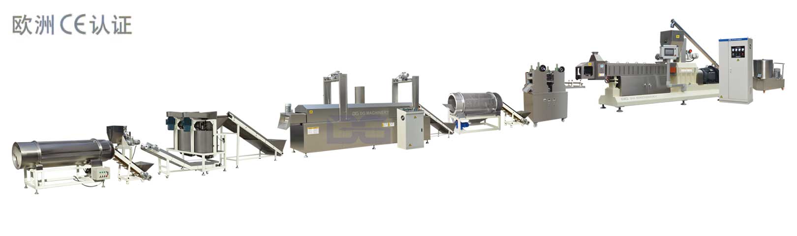 【1】拌粉機【2】螺旋提料機【3】DG75-II主機【4】三角成型機【5】冷卻分離機【6】連續油炸機【7】雙甩油線【8】調味線