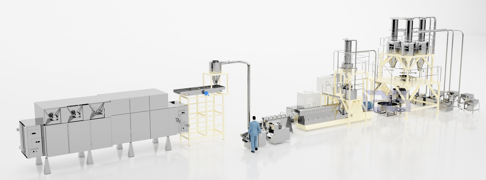 4、雙螺杆擠壓膨化法改變產品狀態和形狀簡單易行,產品更多樣。