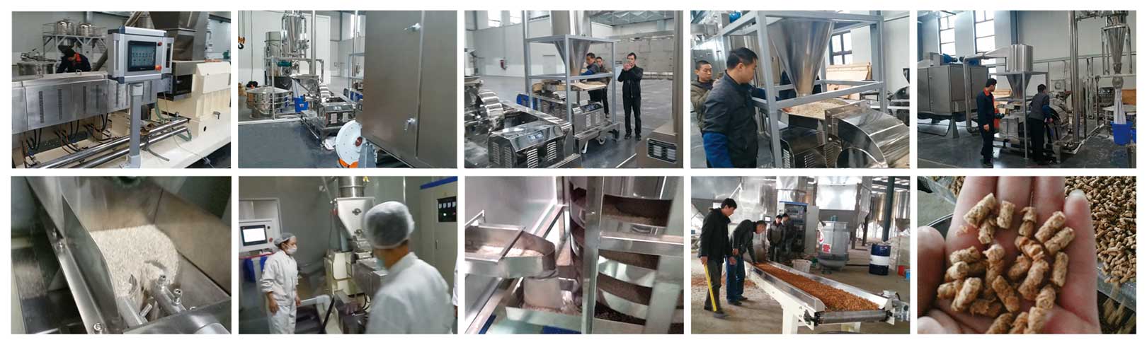 全自動雙螺杆營養米粉生產線以大米、玉米、燕麥、蕎麥、麥麩、豆類等五穀雜糧為原料,全自動流水線完成自動配比混料、擠壓膨化、烘幹、無塵粉碎、比例混合、稱重包裝等工藝流程,與傳統的手工炒製法相比,可加工的原料更廣、生產效率更高、產品質量穩定、衛生環保、生產過程精準控製;該生產線既可生產五穀營養粉及固體飲料,如“五穀養生粉”、“蕎麥粉”、“燕麥粉、”“紅豆羹”、“綠豆羹”等,也可添加營養素或功能成分,生產保健功能營養粉,如“紅棗蓮子羹”、黑芝麻糊”、“代餐粉”等。